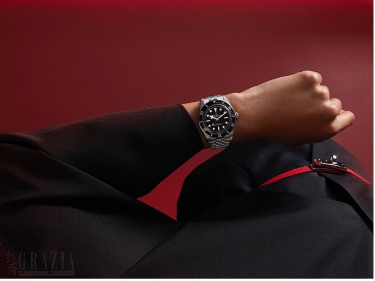 酒红色及黑色双色外圈饰以镀金24小时刻度,不仅如实呈现碧湾系列一贯的设计特色,更令人想起昔日的光辉岁月——初代帝舵潜水表给人们带来的惊喜,与乘坐喷气式飞机往返不同时区的新奇交织在一起,一切都令人欢欣雀跃。钟点标记、指针及双色外圈上的标记亦采用镀金装饰。上链表冠则饰有浮雕帝舵表玫瑰标志,这也是帝舵表最受欢迎的设计之一。
