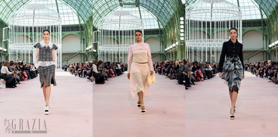 品牌风格符号亦得到创新演绎:套装与小黑裙,斜纹软呢与jersey针织面料,绗缝手袋与双色鞋……本季,精品部创意工作室将白昼、黑夜乃至变幻莫测的天色融入作品,在巴黎大皇宫的中殿开启一场自由畅快的翱翔之旅。