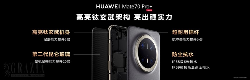 华为一直致力于新材料、新工艺在Mate系列上的率先应用,打造手机更加可靠的品质。而华为Mate 70 Pro+的高亮钛玄武架构,正是这一理念的体现。