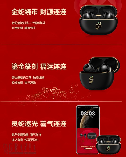 除了福运连连的灵蛇设计之外,华为FreeBuds Pro 4蛇年典藏版更是华为音频技术的集大成者,带给你极致的音乐享受。音乐是新年不可或缺的元素,而其以高解析无损好音质,为这份节日的欢乐增添了更多的色彩。
