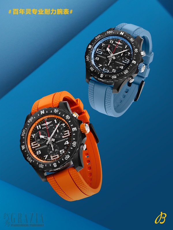百年灵的专业类产品线是「专业人员的专业工具」的具象之作,其中专业耐力腕表(ENDURANCE PRO)专为运动竞赛而生,可谓绝佳装备。凭借其超轻表壳、贴合的橡胶表带、精度极高且丰富的计时功能,尤其令热衷不断挑战自我的极限运动爱好者爱不释手。腕表选用Breitlight®专利材料,比钛金属轻三倍,比精钢轻近六倍。这种材料还具有抗磁性、低致敏性,超级耐磨又耐腐蚀。内部搭载热补偿SuperQuartz™超级石英机芯,经瑞士官方天文台认证 (COSC),精度超出传统石英机芯10倍。橙色的专业耐力腕表44(ENDURANCE PRO 44)活力四射犹如阳光,而蓝色的专业耐力腕表38(ENDURANCE PRO 38)清澈明朗好似天空。爱的路上难免有挑战,但懂得坚持的人总能守住彼此,走得更长更远。