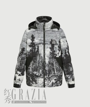 灰色自然印花羽绒外套以黑白调森林雪景印花为核心设计,将自然意境化为可穿戴的艺术。简约短款廓形设计、可拆卸拉链帽与罗纹收口袖等细节,在体现产品的艺术风格表达的同时,也让穿着体验更加便捷、温暖。