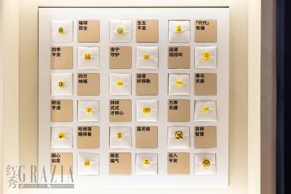 作为 Charme 系列特色装置,Charme Trunk 「百变旅行箱」将珠宝盒的设计灵感转化为一座灵动随行的风格百宝箱,陈列着钻石 Charme、美好寓意、酷黑及IP 联名合作款等系列代表性作品,并通过视觉影集在箱体两侧展示黄金串珠的搭配巧思与匠心工艺。展陈结合在地文化语境进行解读,使每一件作品都成为链接个性态度的风格符号,并通过卓越硬黄金电铸与精细镶嵌工艺,将寓意与质感一并呈现。