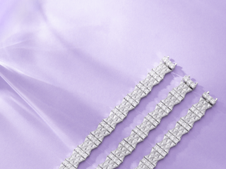 淡紫色与银白色泽的交织辉映,呈现出清新典雅的和谐之美。这种配色不仅呼应季节,更拥有绝佳的适配性:淡紫的柔美弱化了金属的冷冽,银白的璀璨则提亮了紫色的韵味,使其无论是在白日的自然光下,还是在夜晚的灯光、烛光中,都能折射出恰到好处的光彩,从容穿梭于各种场景。系列中同色系的仿麂皮质感包袋配饰,以其细腻纹理与柔软触感,完美呼应珠宝的优雅调性,成为整体造型和谐统一的点睛之笔,陪伴佩戴者无惧场景切换。