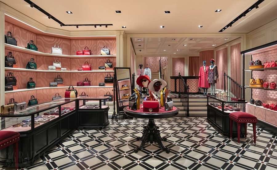 店铺设计将传统与现代、工业与浪漫风格相结合,与创作总监亚力山卓∙米开理(Alessandro Michele)的美学视野遥相呼应,展现品牌优雅而现代的折衷主义美学。