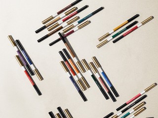该系列中的每一款描彩眼线笔与描彩唇线笔均以由可持续森林木材所制成的笔杆为载体,为眼妆和唇妆提供丰富的 色彩选择。每款作品均配以刻有H字样的金色金属笔盖, 由爱马仕美妆产品设计总监Pierre Hardy创作而成,笔杆 造型优雅致敬马术障碍赛中的彩色跳杆。图形感设计配以三色亮泽漆彩,成就这件由精巧纸盒相护的美物。
