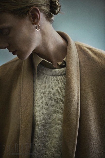 秋意初至,Johnstons of Elgin以湖水蓝、海军蓝及层次丰富的冷灰色构建主调,在经典圆领毛衣等核心单品中缓缓铺展。此一色彩谱系,取意于海天交汇时的流动光影,也映照出西海岸现代建筑玻璃幕墙折射出的冷冽光泽。石灰色与燕麦色等温柔中性色的加入,为空灵色调增添平衡质感,于细腻针织间流露低调精致。廓形设计延续极简建筑美学的流畅表达,以干净利落的曲线构建剪裁轮廓,针织开衫与包覆式斗篷等造型单品,以建筑语言重新诠释身体轮廓之美。