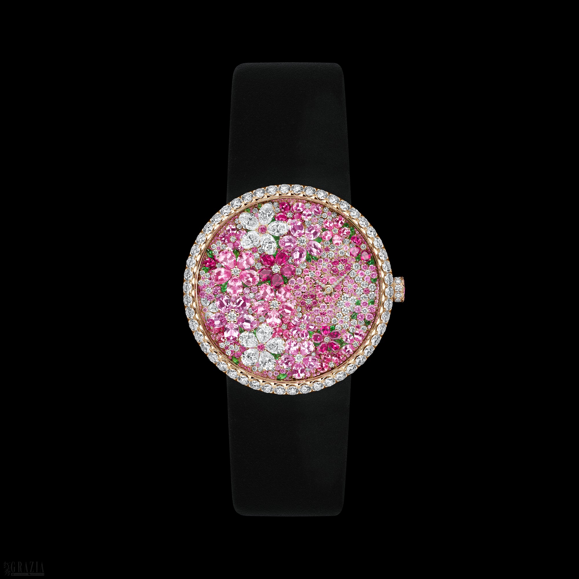 迪奥珠宝艺术总监维多利娅•德卡斯特兰(Victoire de Castellane)从克里斯汀•迪奥(Christian Dior)对花卉与花园的热爱中汲取灵感,携瑞士高级制表技艺与品牌高级珠宝工艺,打造出这款非凡时计。