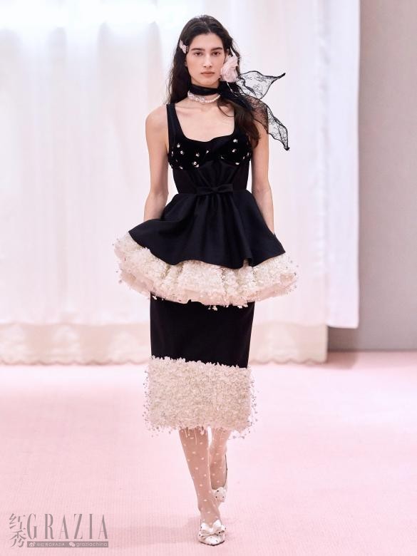 走秀现场,精致雕刻的蕾丝与立体花卉等细节设计逐一呈现,每一处工艺都诉说着盛装前往美好未来的期许。轻盈的面料、灵动的廓形与柔和的色彩,契合春夏的轻盈氛围,同时传递出女性以自我为指南,勇敢迎接未知、书写专属人生旅程的精神内核,为在场嘉宾带来一场视觉与情感共鸣的时尚盛宴。