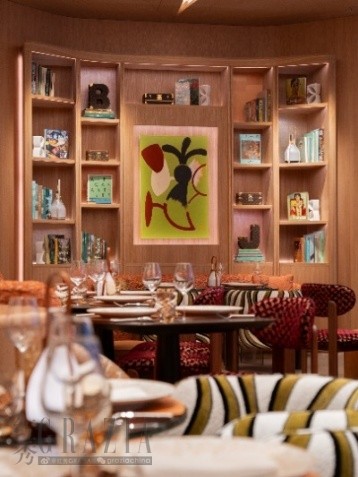 首先步入的是“无限之境”,即镜面环绕、空间交错的前厅。光影交映间,陈列的书籍仿佛诉说着旅行、文化与探索的永恒故事。穿过这方意蕴动人的起点,客人将进入以流线造型与柔和轮廓出彩的主餐区,在此感受宁静与亲密的氛围。