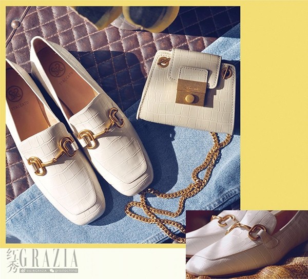 奶油鞋和奶油色的链条包,在光影交错间呈现迷人的魅力,搭配一条简约有型的牛仔裤,就能提前感受早春假日的清新。