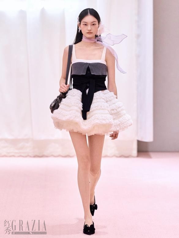 走秀现场,精致雕刻的蕾丝与立体花卉等细节设计逐一呈现,每一处工艺都诉说着盛装前往美好未来的期许。轻盈的面料、灵动的廓形与柔和的色彩,契合春夏的轻盈氛围,同时传递出女性以自我为指南,勇敢迎接未知、书写专属人生旅程的精神内核,为在场嘉宾带来一场视觉与情感共鸣的时尚盛宴。